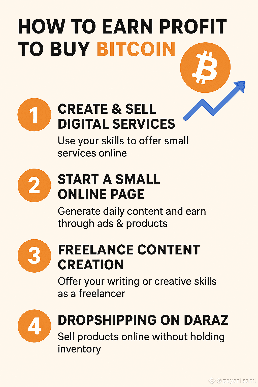 $BTC Bitcoin is a popular digital currency, but many people struggle to save enough money to invest. The good news is that you can start earning profit online with simple methods and use that money to buy $BTC Bitcoin. The easiest way is to offer small digital services, such as writing assignments, creating posters, or doing data entry. These tasks take little time and require no investment.