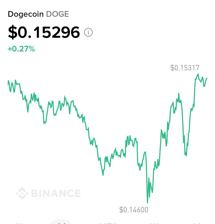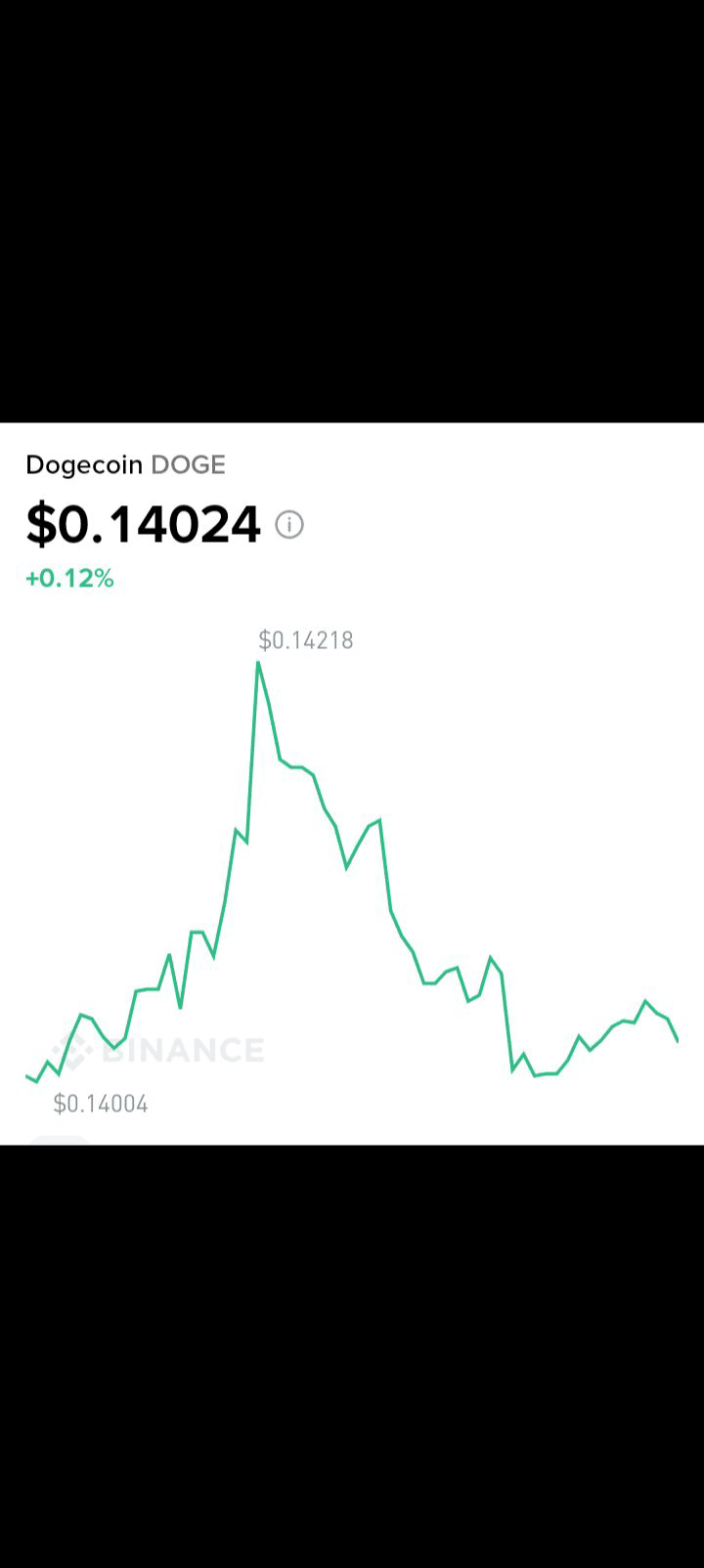 No sé ustedes, pero yo empiezo a entrar en pánico 😅 Para ponerte en contexto, hace 3 días Dogecoin estaba en baja y era muy, muy preocupante 🤔 Anteayer comenzó a subir en la sombra 🔺⏫ Subió a 0,14$ te pongo la captura de pantalla de ese famoso momento 😉