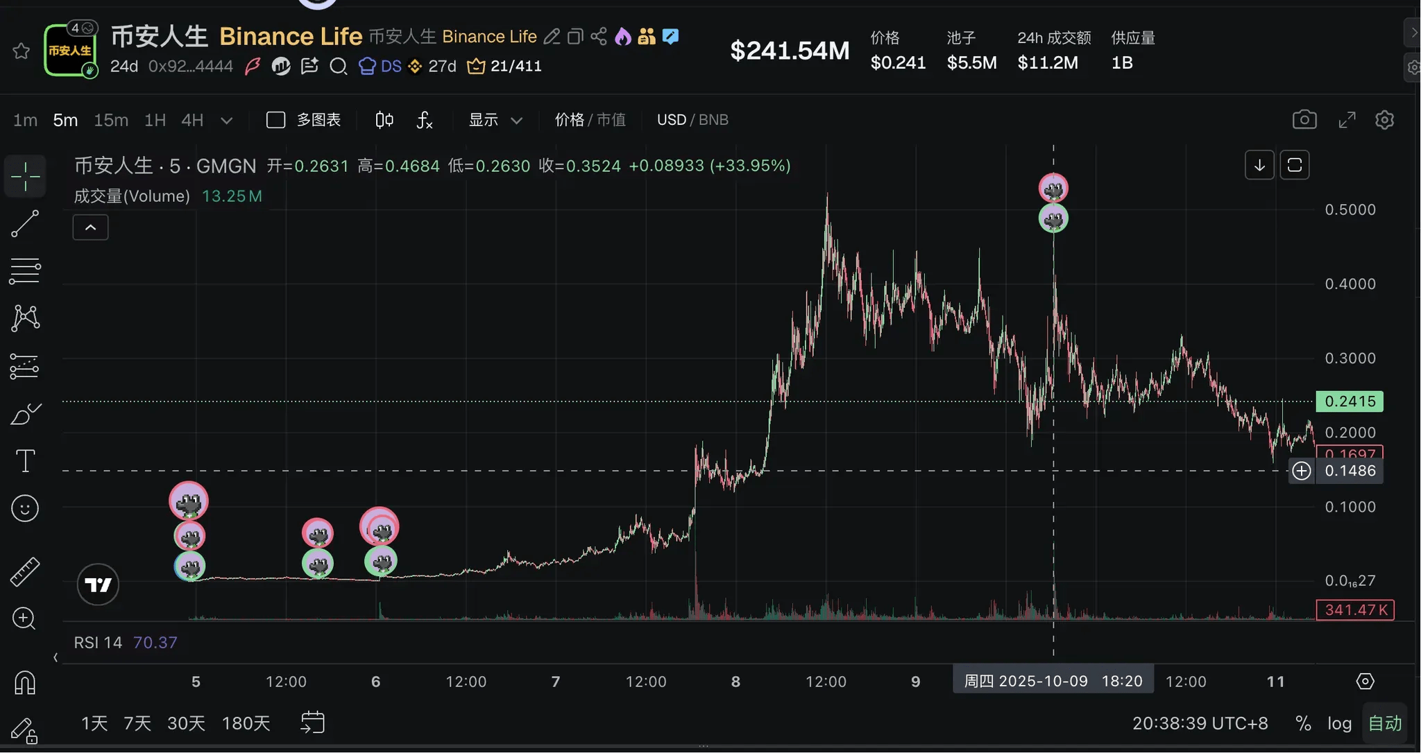 A principios de octubre de 2025, un token llamado 'Binance Life' apareció silenciosamente en la cadena BSC.