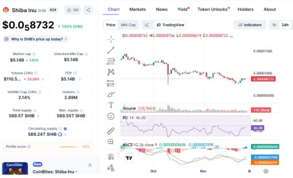 Shiba Inu ($SHIB ) ha estado comerciando alrededor del nivel de $0.000008732 con un aumento del 1.62% en las últimas 24 horas. El reciente movimiento de precios y sus zonas de soporte-resistencia muestran que hay una posibilidad de un aumento adicional en el precio en un futuro cercano.