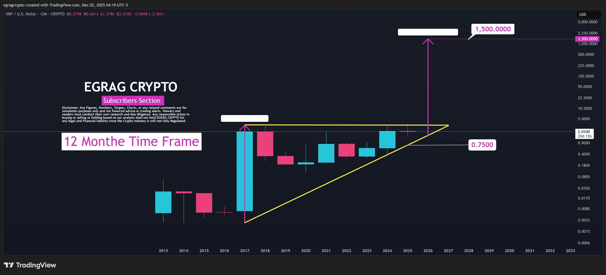 Egrag es un alcista a largo plazo, y su análisis utilizando canales exponenciales es crucial para XRP. Debemos ignorar el ruido a corto plazo y centrarnos en la estructura macro. La clave es el cierre de $2.60. Una vez que superemos la resistencia de $3.40, el camino hacia cifras de dos dígitos se abre. La paciencia es necesaria para esta operación.
