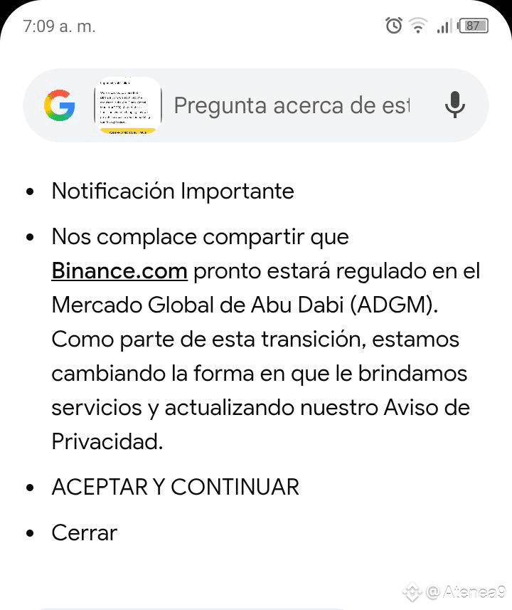 Hoy al abrir la app de #BİNANCE me aparece está notificación. #ADGM #ADGlobalMarket #DubaiBlockchainWeek
