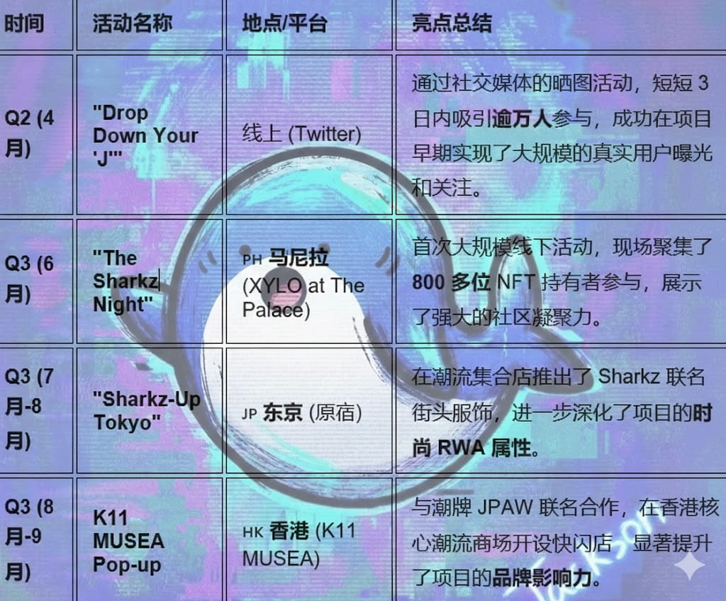 Fusión de RWA: los poseedores disfrutan de ofertas exclusivas de marcas de moda colaborativas fuera de línea (como la serie Sharkz-Up). A medida que la línea de productos complementarios se enriquece gradualmente, la propiedad de moda del NFT se está reforzando continuamente.