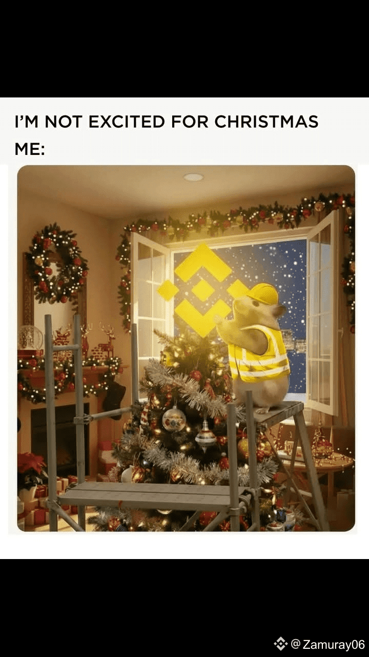 Yo: preparando el árbol como si el espíritu navideño viniera con el logo de Binance iluminando la ventana. 😄💛