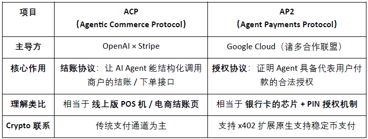 AP2 está diseñado con principios de pago independientes, compatible con tarjetas de crédito, transferencias bancarias, pagos en tiempo real y acceso a canales de pago de criptomonedas como las monedas estables mediante extensiones como x402. Dentro del conjunto de protocolos de Agentic Commerce, AP2 no gestiona detalles específicos de productos o pedidos; en cambio, proporciona un marco universal de autorización de pagos de agentes para diversos canales de pago.