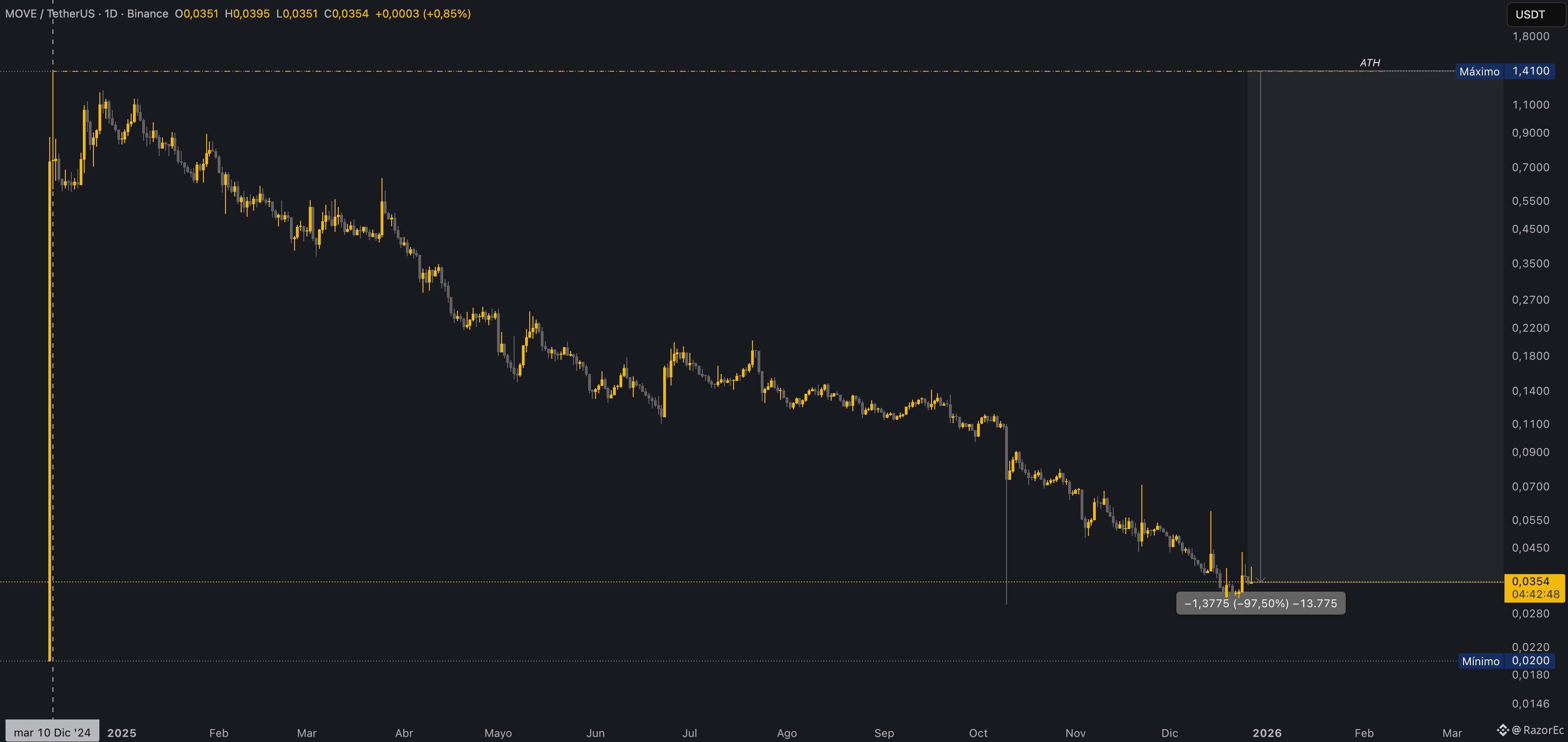 MOVE es una apuesta de mayor riesgo sobre una nueva capa técnica construida sobre Ethereum y el lenguaje Move. Muy castigado tras su lanzamiento, su potencial depende casi por completo de que los desarrolladores adopten el ecosistema.