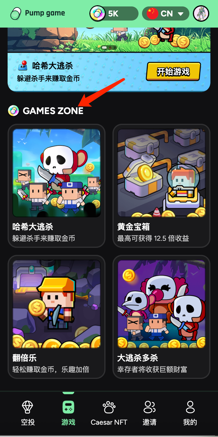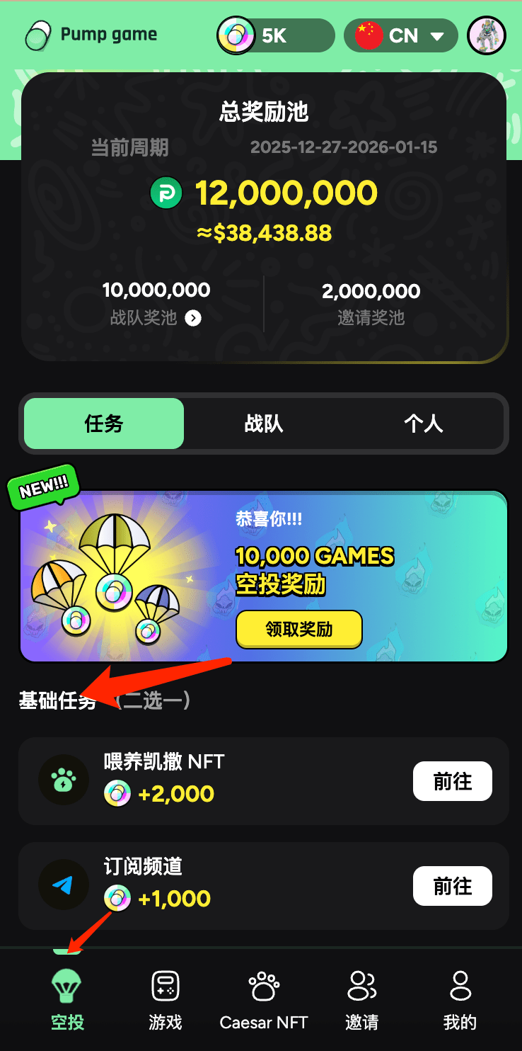 Solo necesitas completar las tareas designadas para obtener puntos $GAMES, que se utilizarán para la asignación de airdrop personal y de equipo posterior.
