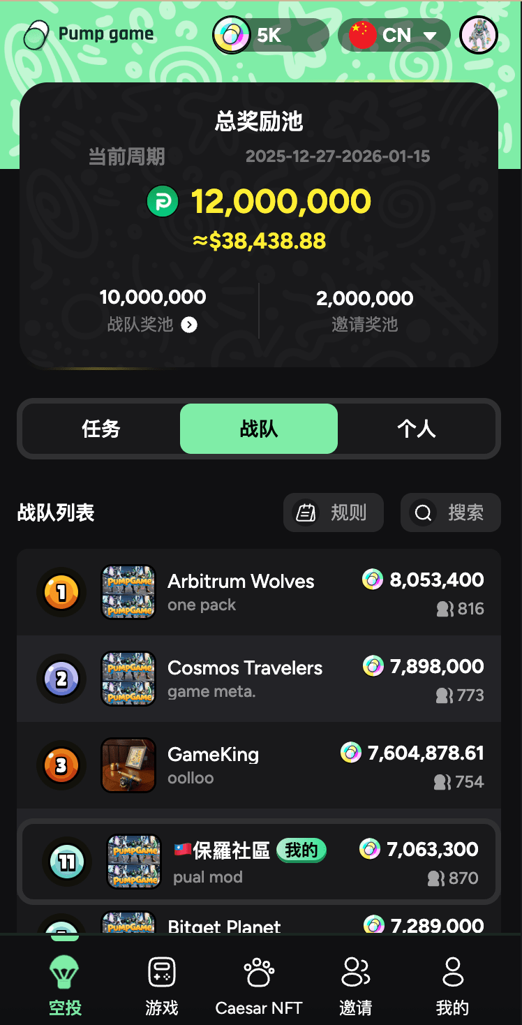 Pump.game abre oficialmente la segunda fase del airdrop, el total de este airdrop es de 17,000,000 $GAME.