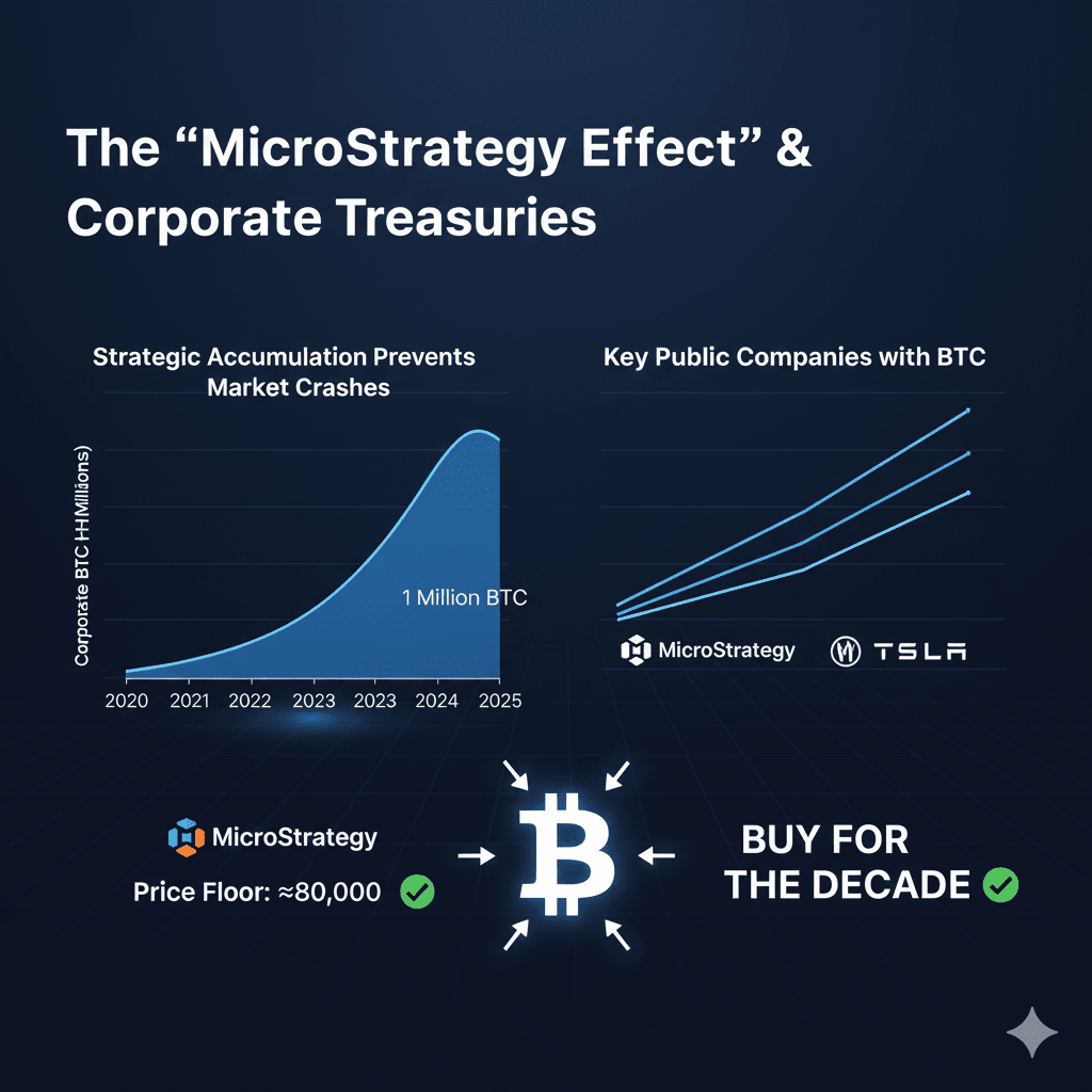 En 2026, los vendedores están exhaustos, pero los compradores tienen horizontes de tiempo infinitos. Las empresas públicas ahora tienen más de 1 millón de BTC en sus tesorerías. Cuando Bitcoin bajó a $81,000 en noviembre de 2025, no vimos ventas por pánico; vimos acumulación estratégica.