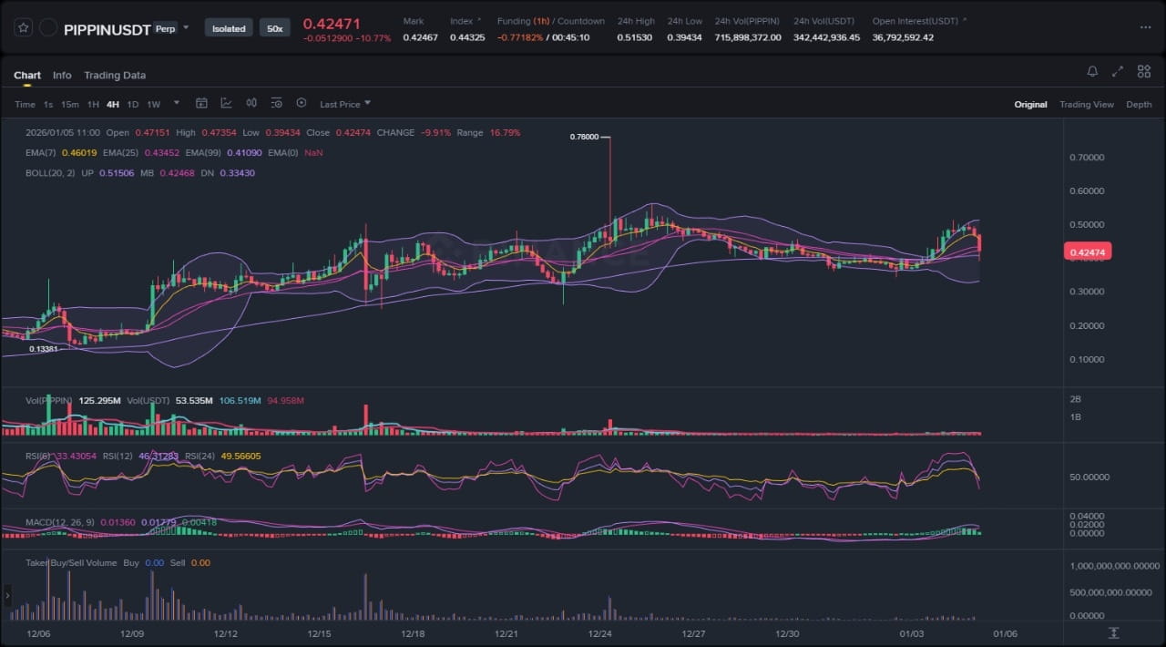 PIPPIN ha encendido un fuerte rally del 31% en las últimas 24 horas, rompiendo días de presión bajista en medio de un rebote más amplio del sector de monedas meme, pero la disminución de métricas de tenedores y las opiniones contradictorias de los analistas plantean preguntas sobre la sostenibilidad. Como analista sénior del mercado de criptomonedas en Binance Square, este artículo disecciona el gráfico adjunto de 4 horas junto con los tres últimos titulares de noticias para descubrir la acción del precio subyacente, los temas impulsados por noticias y los escenarios probabilísticos para los traders que navegan por este oscilante volátil.