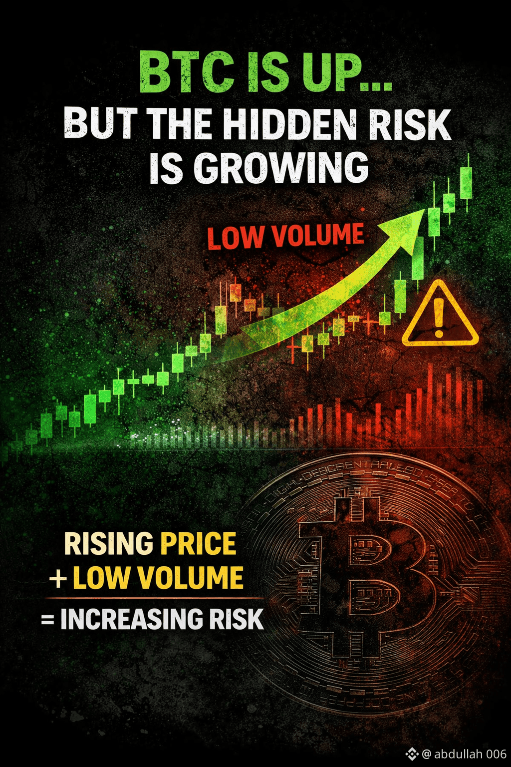 $BTC is moving up,and confidence is coming back. But smart money watches volume,not excitement. When price rises fast and patience disappears,risk quietly increases.
