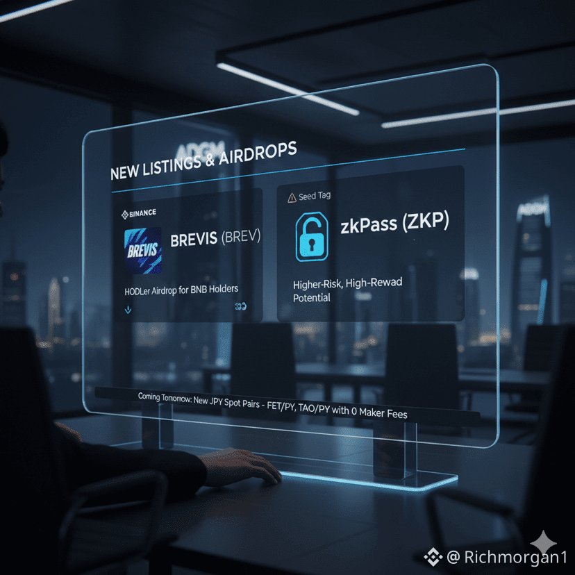 Binance's listing activity remains as dynamic as ever, with two tokens, Brevis (BREV) and zkPass (ZKP), capturing significant attention. Brevis was listed this week with multiple trading pairs and is particularly trending due to its associated "HODLer Airdrop" for BNB holders, incentivizing long-term loyalty. Meanwhile, zkPass (ZKP) has been added with a "Seed Tag," indicating its higher-risk, high-reward potential. Additionally, Binance is set to introduce new Japanese Yen (JPY) spot pairs tomorrow, January 9, with a promotional zero-maker fee.