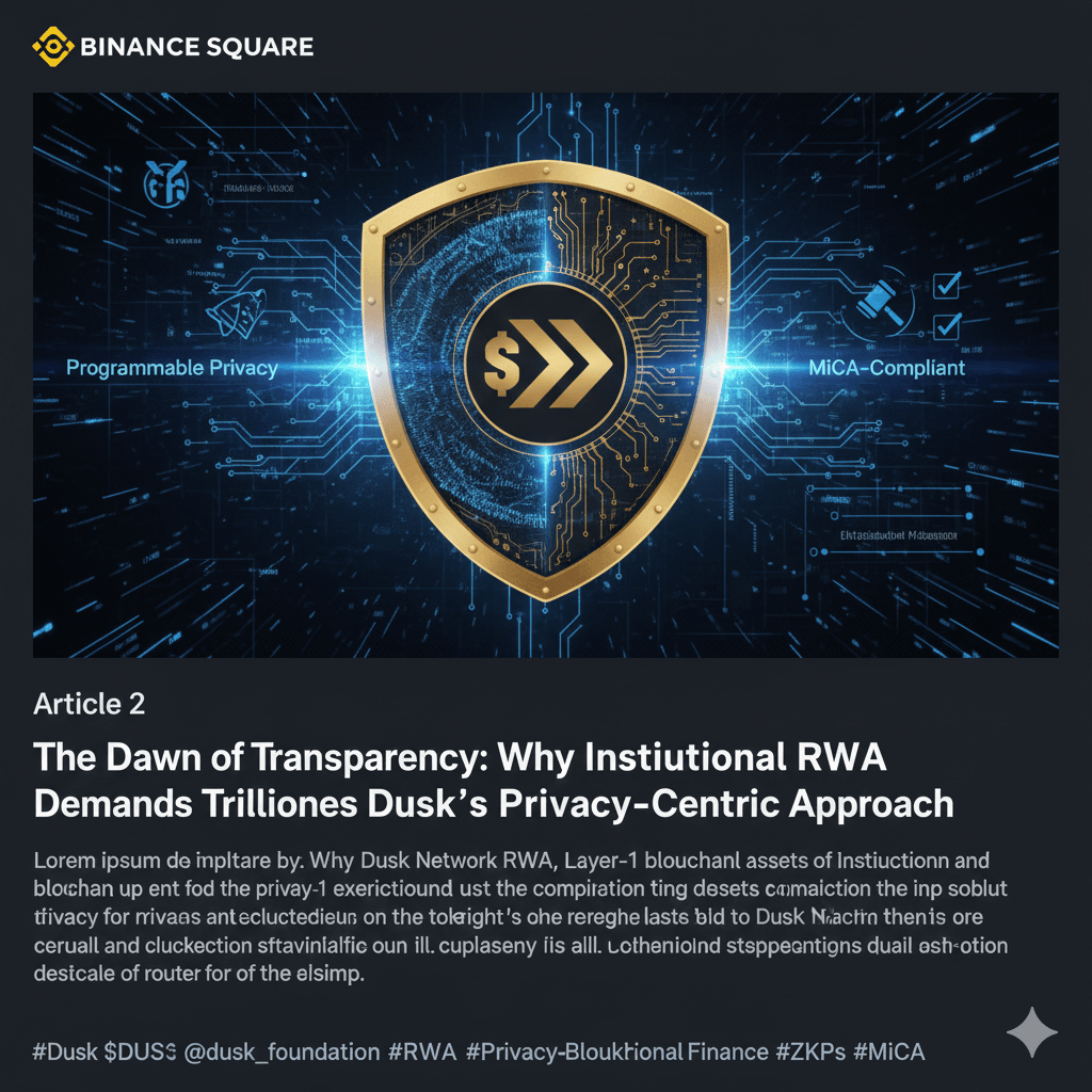 A medida que la narrativa de RWA continúa madurando, proyectos como @dusk_foundation, con su enfoque láser en las demandas únicas de los clientes institucionales, serán instrumentales. Su compromiso de construir una infraestructura que preserve la privacidad y cumpla con MiCA posiciona $DUSK como un componente crítico en la conexión entre las finanzas tradicionales y el futuro descentralizado. La era de la blockchain institucional verdaderamente privada y compliant está aquí, y #Dusk está liderando la carga.