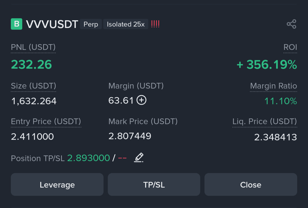 Actualización de posición: +356,19 % de ROI en $VVV / USDT Perpetual.