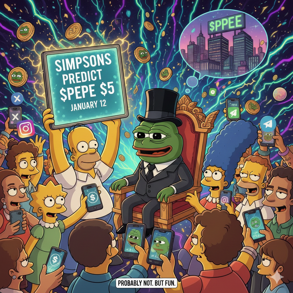 En el mundo de las criptomonedas, pocas cosas viajan más rápido que un meme — excepto un meme con una profecía. El 12 de enero, las plataformas de redes sociales se iluminaron con publicaciones virales que afirmaban que The Simpsons había predicho que $PEPE alcanzaría los $5. Capturas de pantalla, clips y ediciones especulativas inundaron X (Twitter), Instagram y Telegram, reavivando una de las tradiciones favoritas del mundo cripto: las predicciones basadas en la cultura popular.