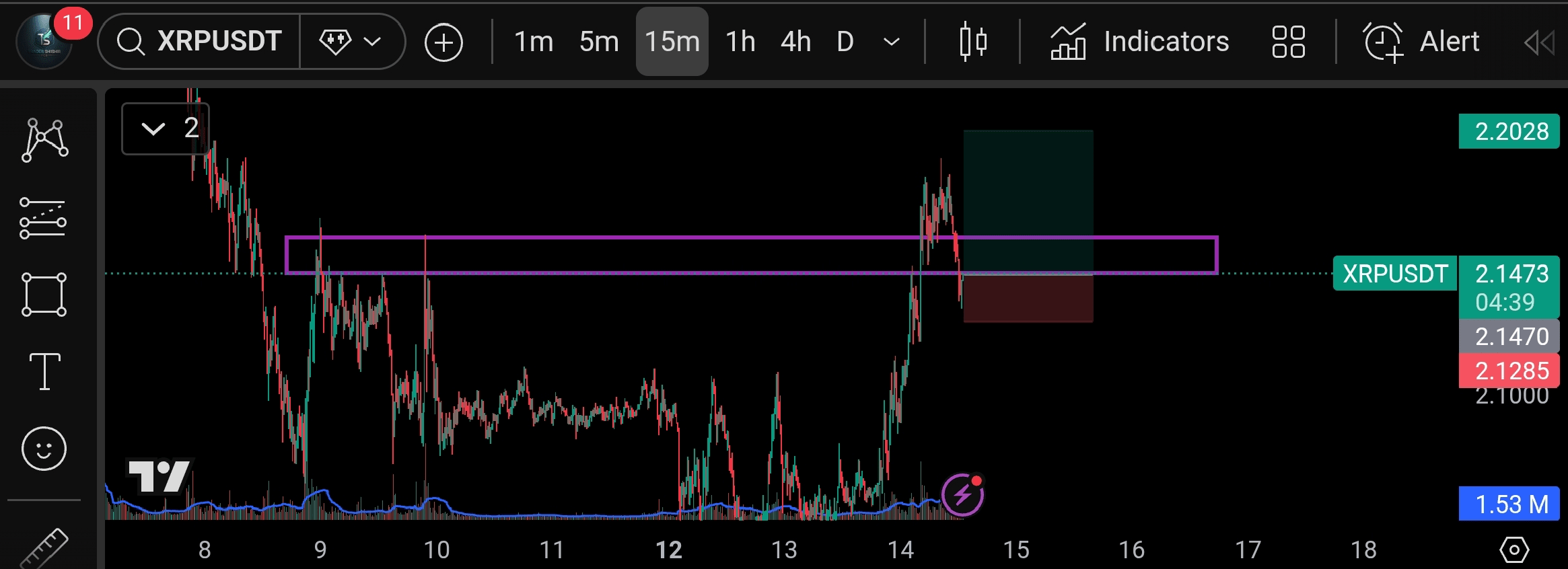 XRP explotando a través de la caja morada en 15 minutos – movimiento alcista limpio!