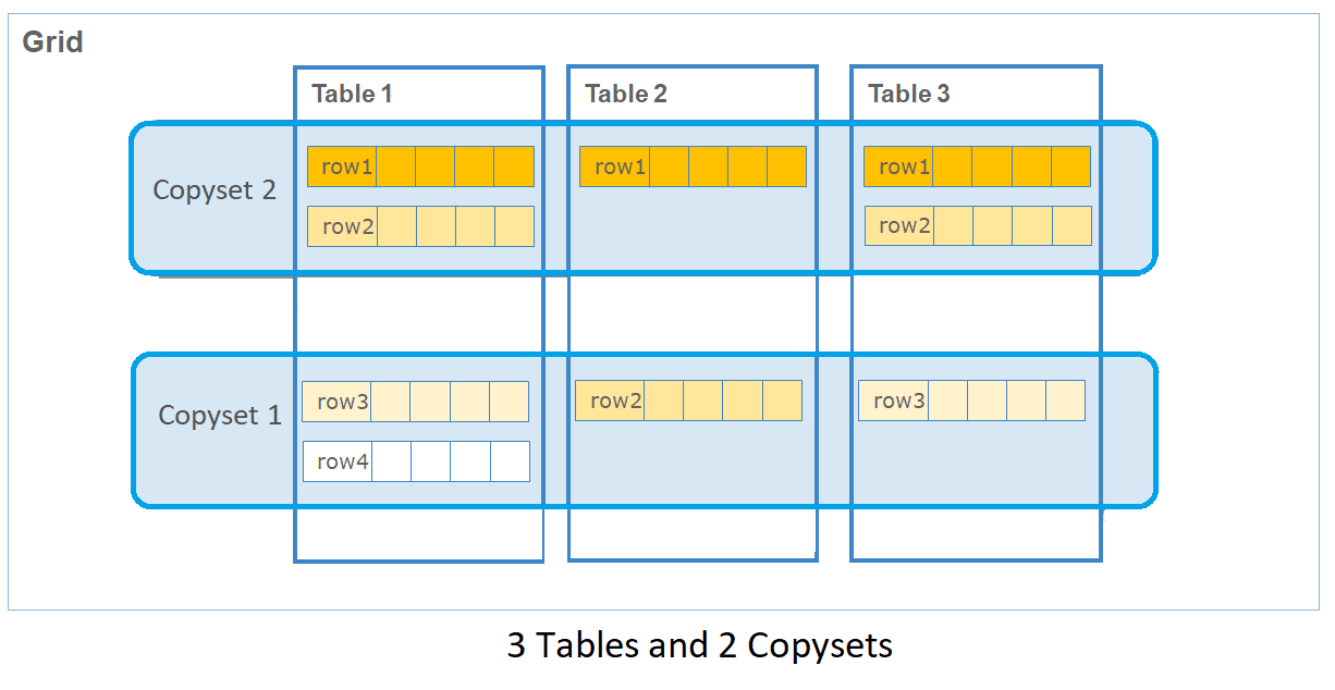 Cada nodo almacena una fila + una columna
