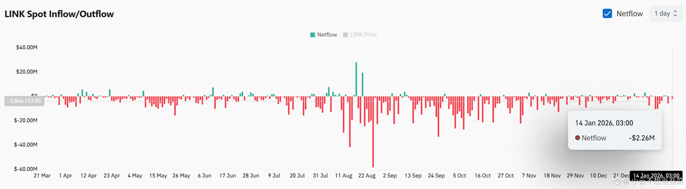 数据也挺有意思:Chainlink最近大约有226万美元从交易所流出,这不是恐慌抛售,而是持续提款。交易所里的币少了,卖压自然就轻了。