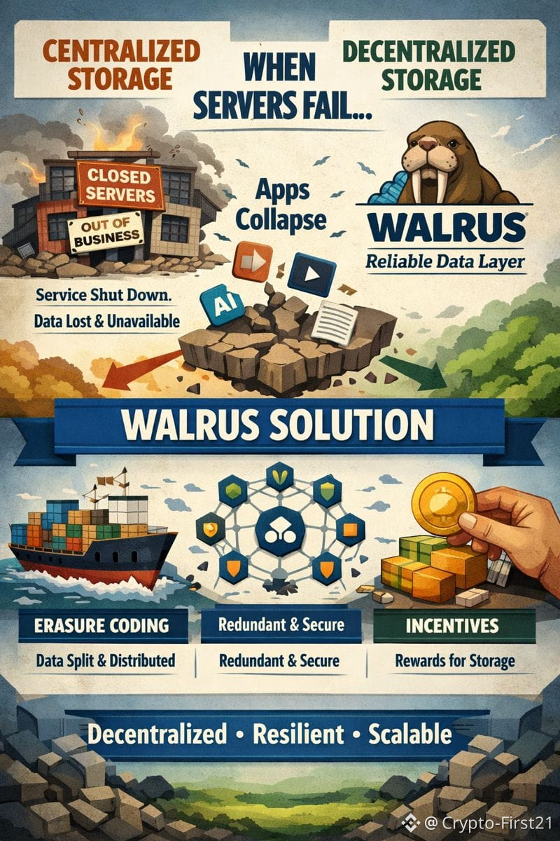 I first started paying attention to decentralized storage not because it was a whitepaper, but because of a very ordinary problem. I was trying to get at old data from a service that was no longer around. The files weren't "lost" in the dramatic sense. The company had simply shut down, the servers were gone, and the data vanished with it. That moment has lingered with me since then. It reminded me that most of the digital infrastructure today depends on a few entities deciding to keep operating. And when they stop, everything built on top quietly collapses.