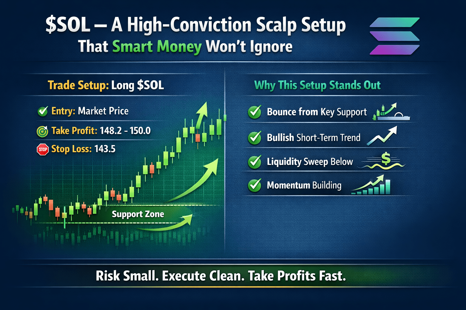 $SOL continúa comportándose como un líder en el mercado. La configuración actual ofrece una oportunidad rápida y controlada para traders disciplinados que buscan capitalizar la volatilidad sin riesgos innecesarios.