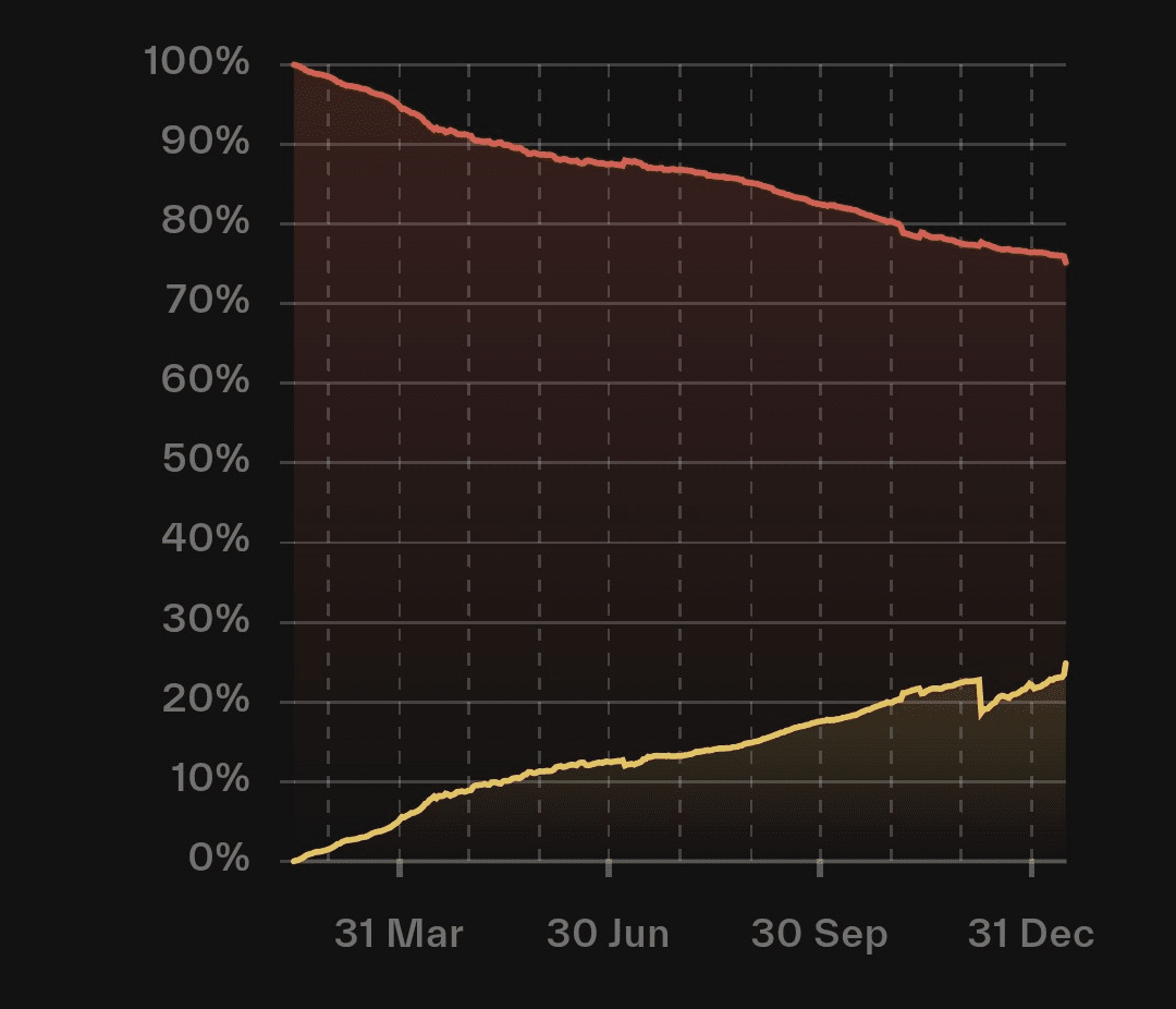 Esta es la noticia de la semana: Bittensor acaba de superar el umbral del 76,5 % de suministro estacado.