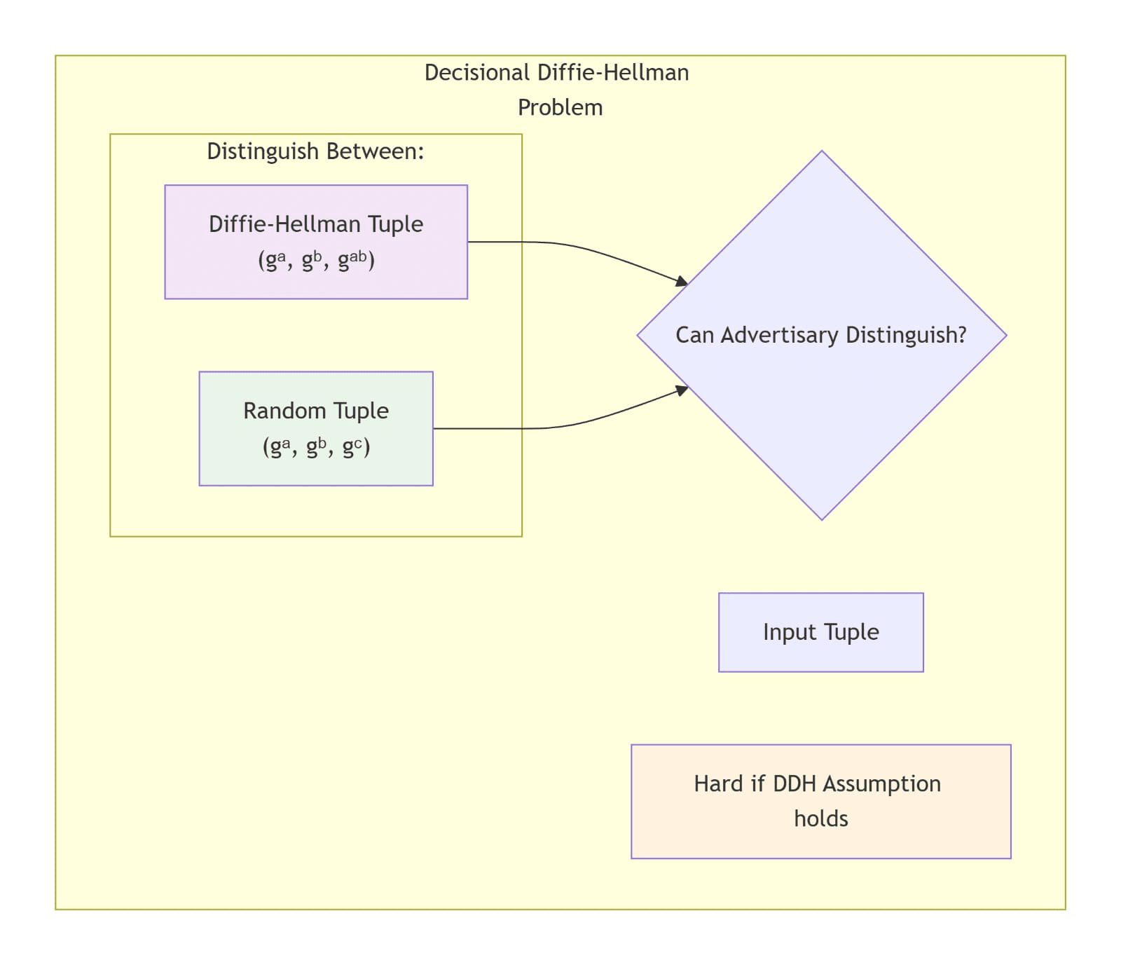 As a consequence of such assumed randomness, the Decisional Diffie-Hellman (DDH) Problem relates to distinguishing the following two probability distributions: