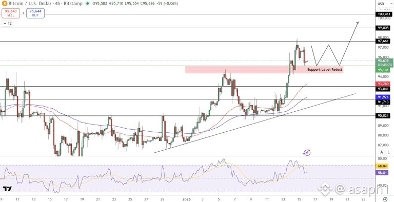 Ojo a este dato: aunque vimos liquidaciones de casi 332 millones en las últimas 24 horas (donde los que entraron tarde al movimiento alcista también salieron raspados), la estructura de Bitcoin se ve mucho más sana que la de Ethereum o Solana. Mientras Bitcoin mantenga el soporte de los $95,000, estamos en una zona de rebote constante. Técnicamente, estamos viendo una "bandera alcista", una formación que suele ser la pista de aterrizaje antes de que el precio busque despegar hacia la meta psicológica de los $100,000. 🎯