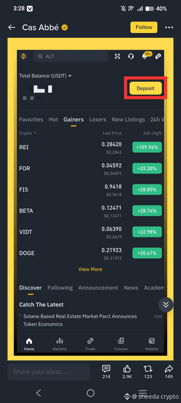 If you already have a verified account on Binance, open the app and the home page will appear on your screen.