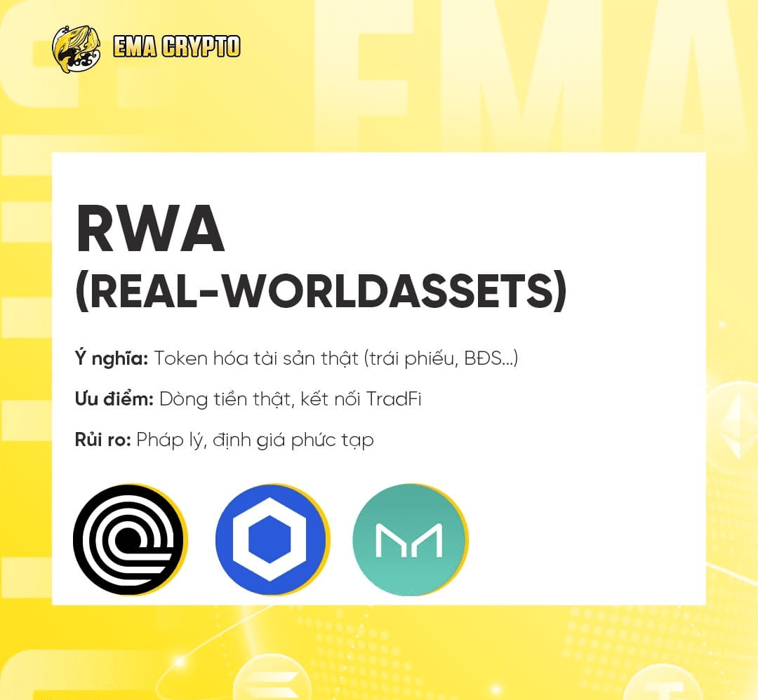 Ventajas: llevar bonos, crédito, bienes raíces, mercancías,.... a la cadena (en resumen, cosas del mundo real a la cadena) → abrir nuevos mercados, nuevos flujos de efectivo. Desventajas: legalidad, valoración, socios de custodia/monitoreo, muchos proyectos son un poco ilusorios pero difíciles de implementar!