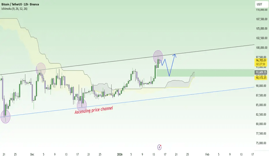Técnicamente, BTCUSDT permanece cómodamente posicionado dentro de un canal ascendente en el marco de tiempo de 12 horas. El mercado continúa imprimiendo máximos más altos y mínimos más altos, confirmando un control alcista sostenido. Los retrocesos recientes parecen saludables y correctivos, sirviendo para reiniciar el impulso en lugar de señalar alguna debilidad estructural.