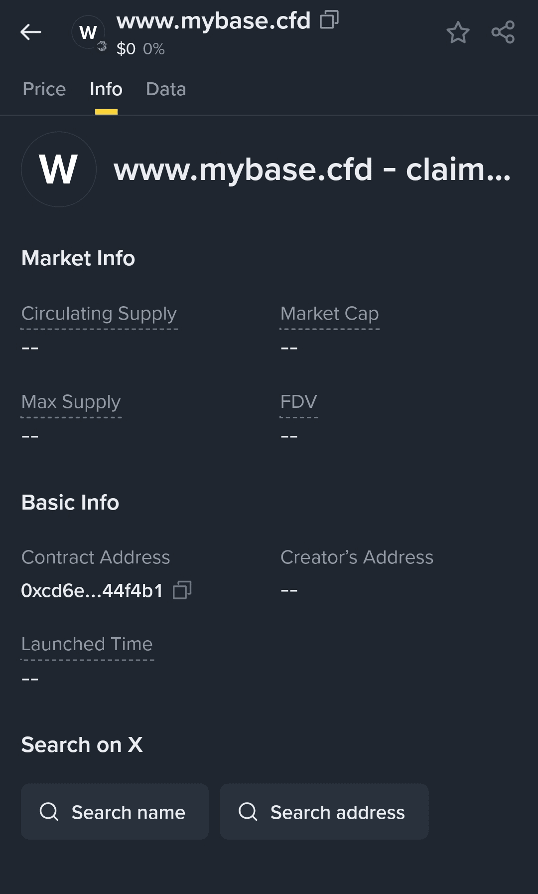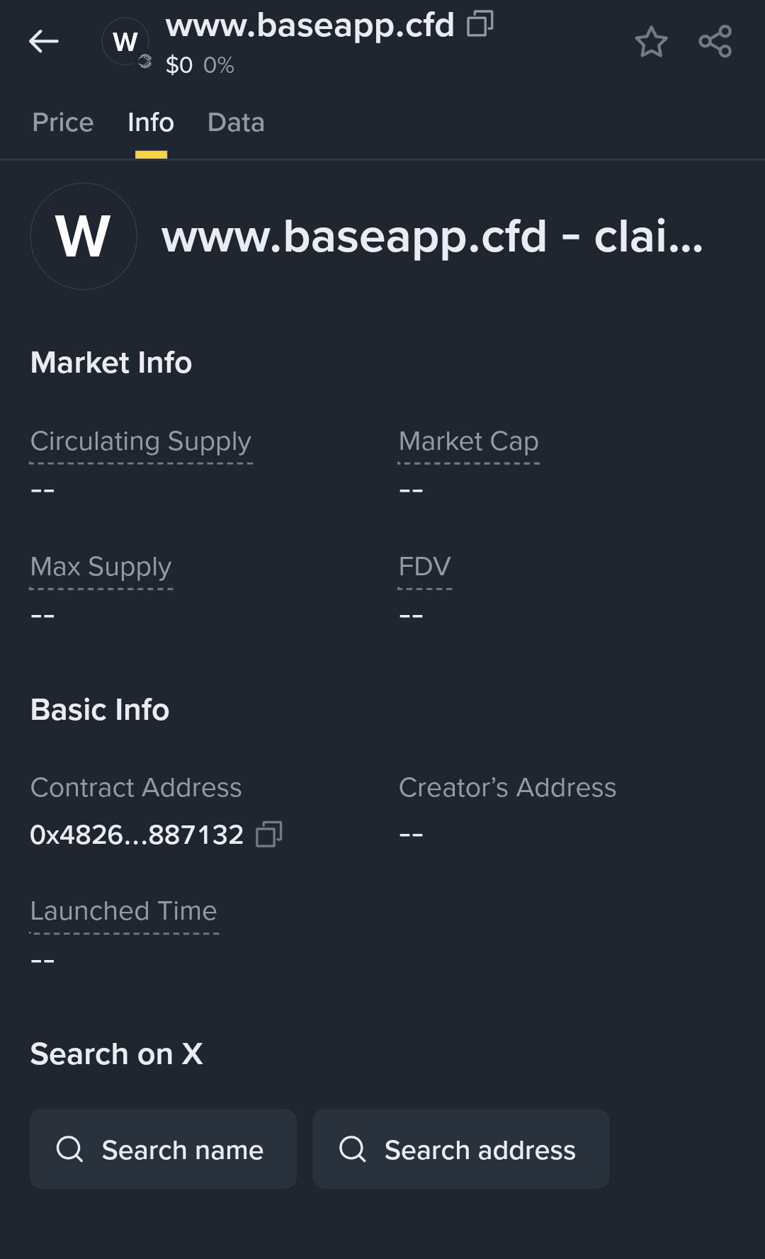 Y aquí llegamos a un sitio web que aparece como el nombre del token (#RedFlagAlert – no visites el sitio en absoluto).