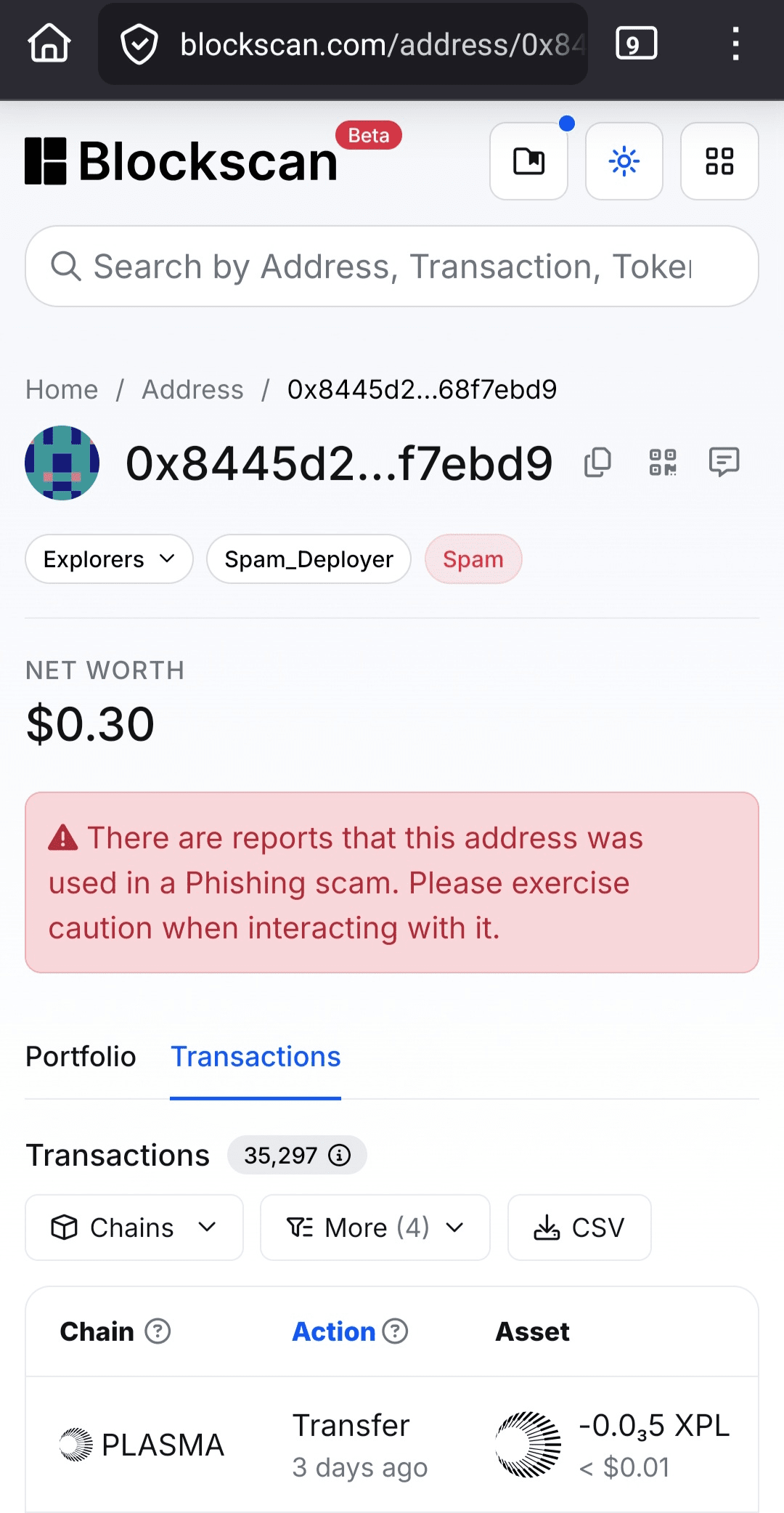 Hoy, mientras revisaba mis billeteras Web3, noté tres transferencias entrantes no solicitadas en el historial de una billetera sin mi conocimiento (no participé en ninguna actividad en cadena, ni se distribuyó este token como un airdrop o giveaway, ni intercambié ningún token con nadie para recibir esta moneda).