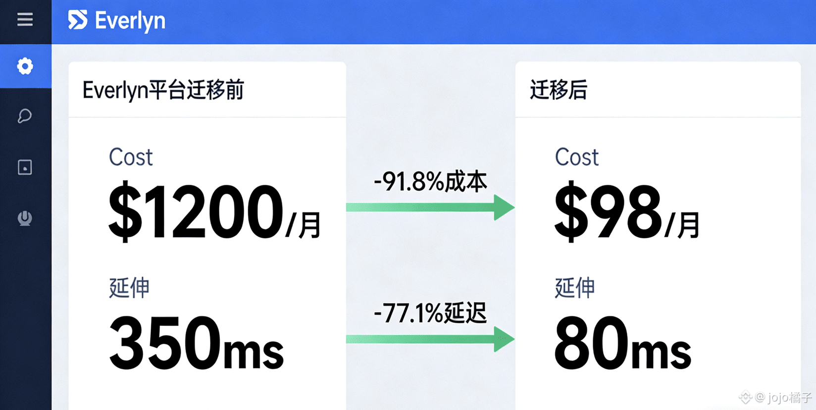 迁移完成后,Everlyn的存储相关指标实现全方位优化: