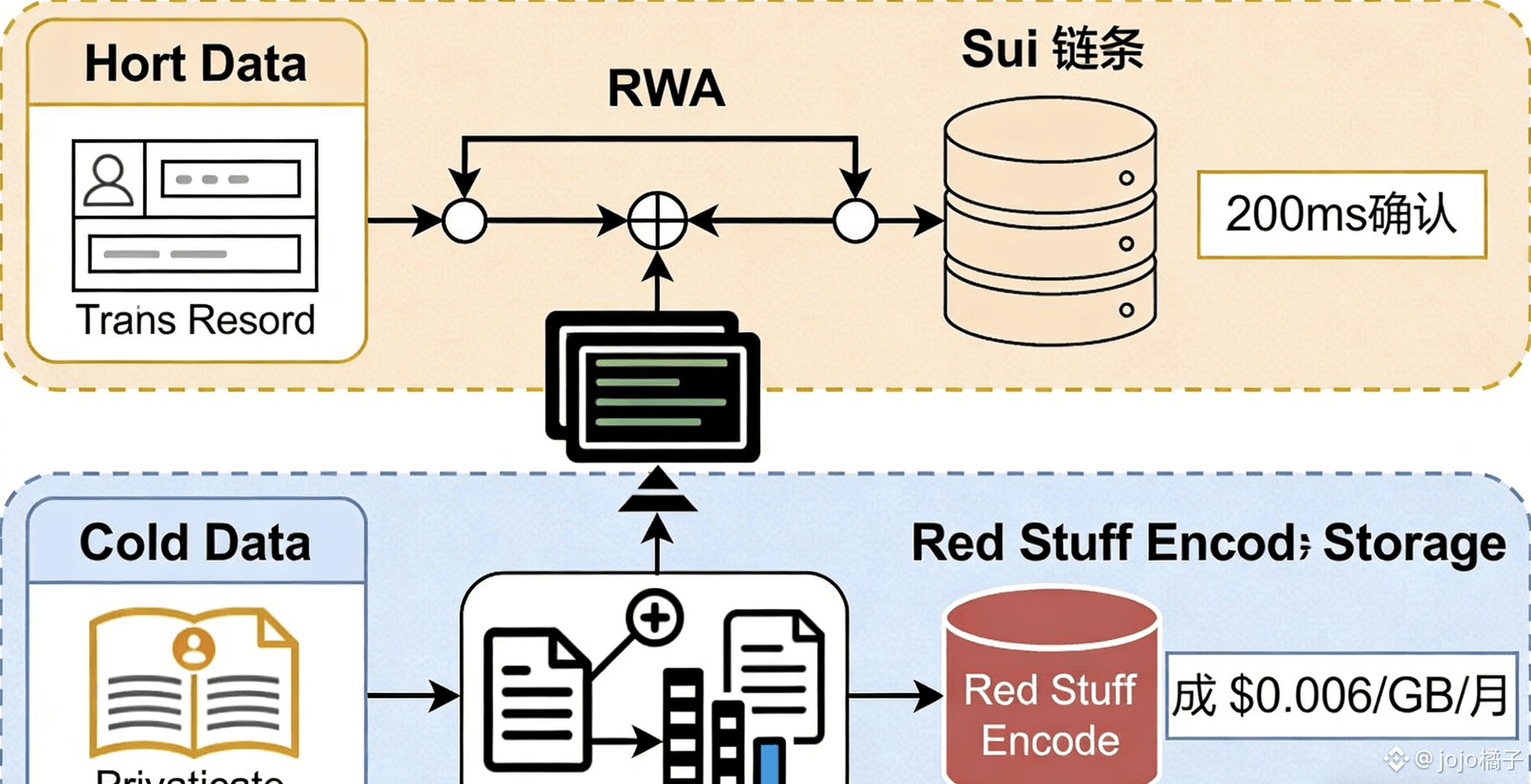 针对RWA交易产生的高频数据(如租金收益记录、资产交易流水),WAL采用“冷热数据分离存储”策略:热数据存储在Sui链上,确保交易实时确认;冷数据通过Red Stuff编码压缩后存储在Walrus节点,降低存储成本。这种组合让RWA交易的确认延迟低至200ms,同时长期存储成本仅为传统方案的1/50。