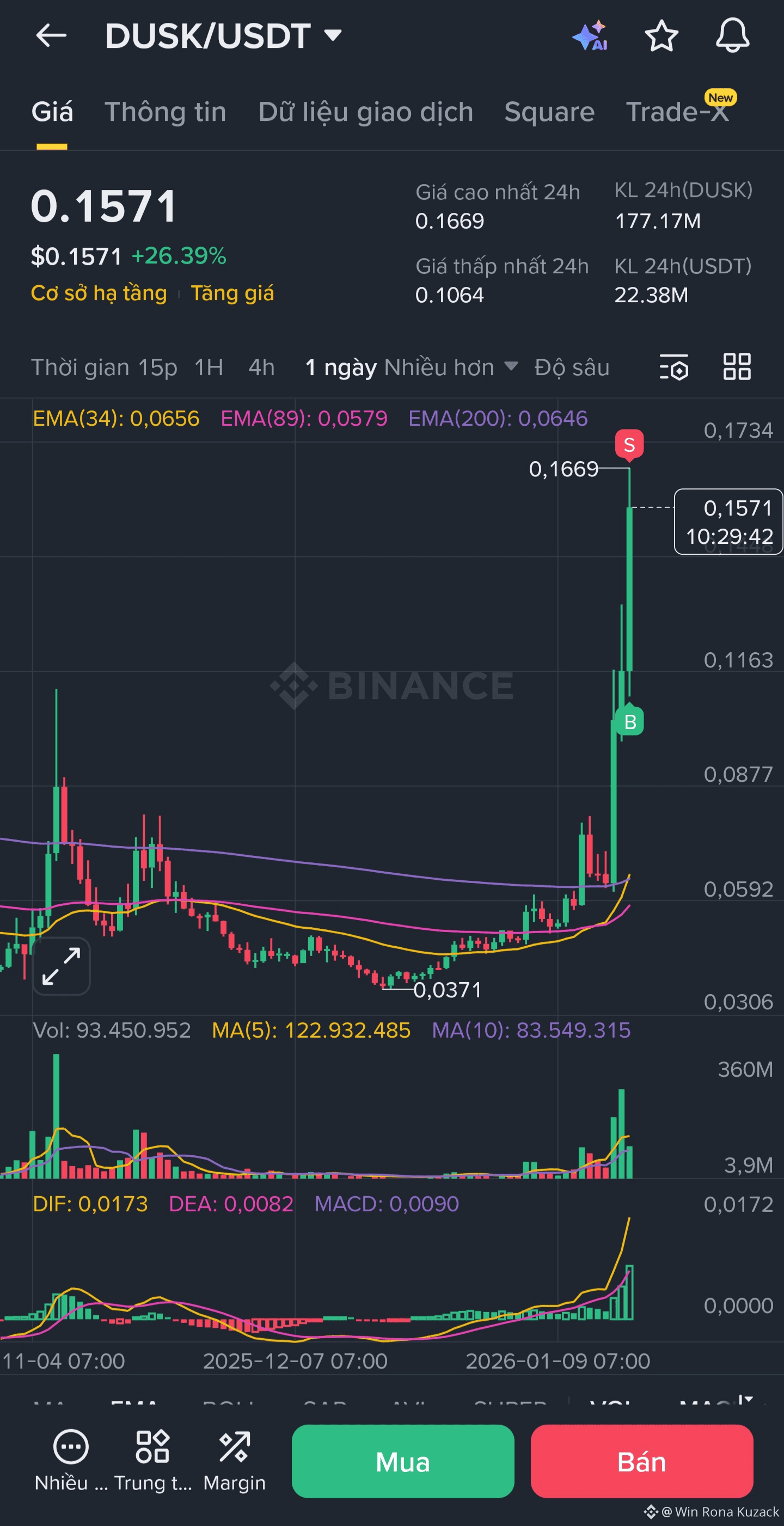 - Giá hiện tại: 0.1557$ đã tăng mạnh có thể chờ điều chỉnh rồi vào 0.1 - 0.12