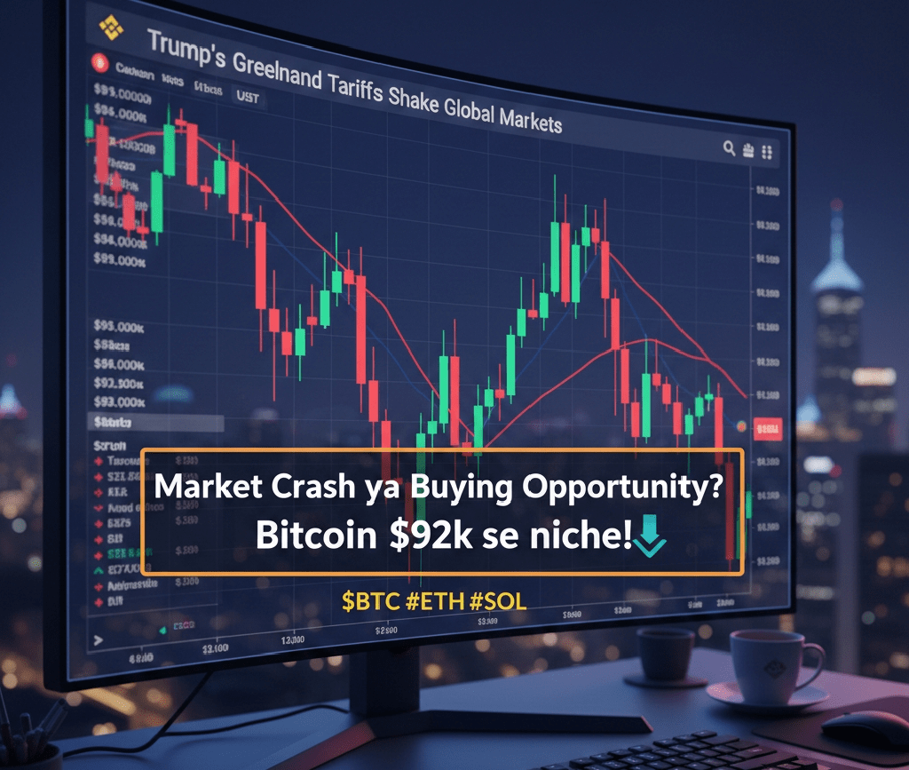 Hoy en el mercado hemos visto una gran agitación de repente. Bitcoin ($BTC ) ha caído por debajo del nivel de $92,000. La principal razón de este colapso son los nuevos aranceles de Groenlandia del presidente de EE. UU., Donald Trump, que han generado algo de temor en los mercados globales. Puntos importantes del mercado de hoy: