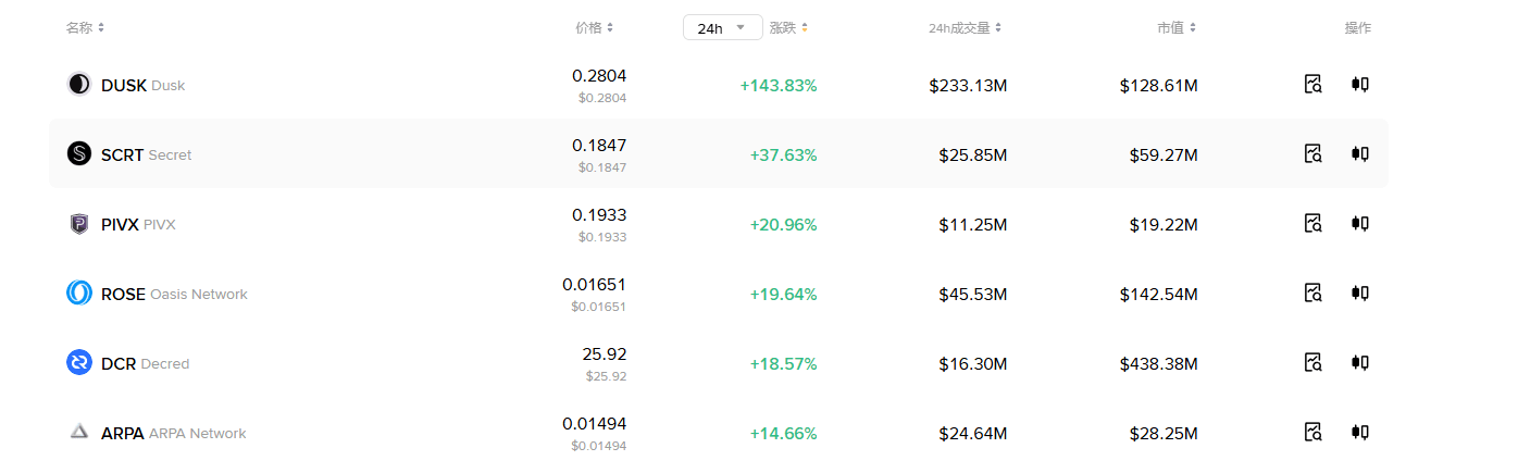$SCRT : Basado en el ecosistema de contratos inteligentes de privacidad, el aumento en 24 horas supera el 28%, el aumento en 7 días supera el 80%;