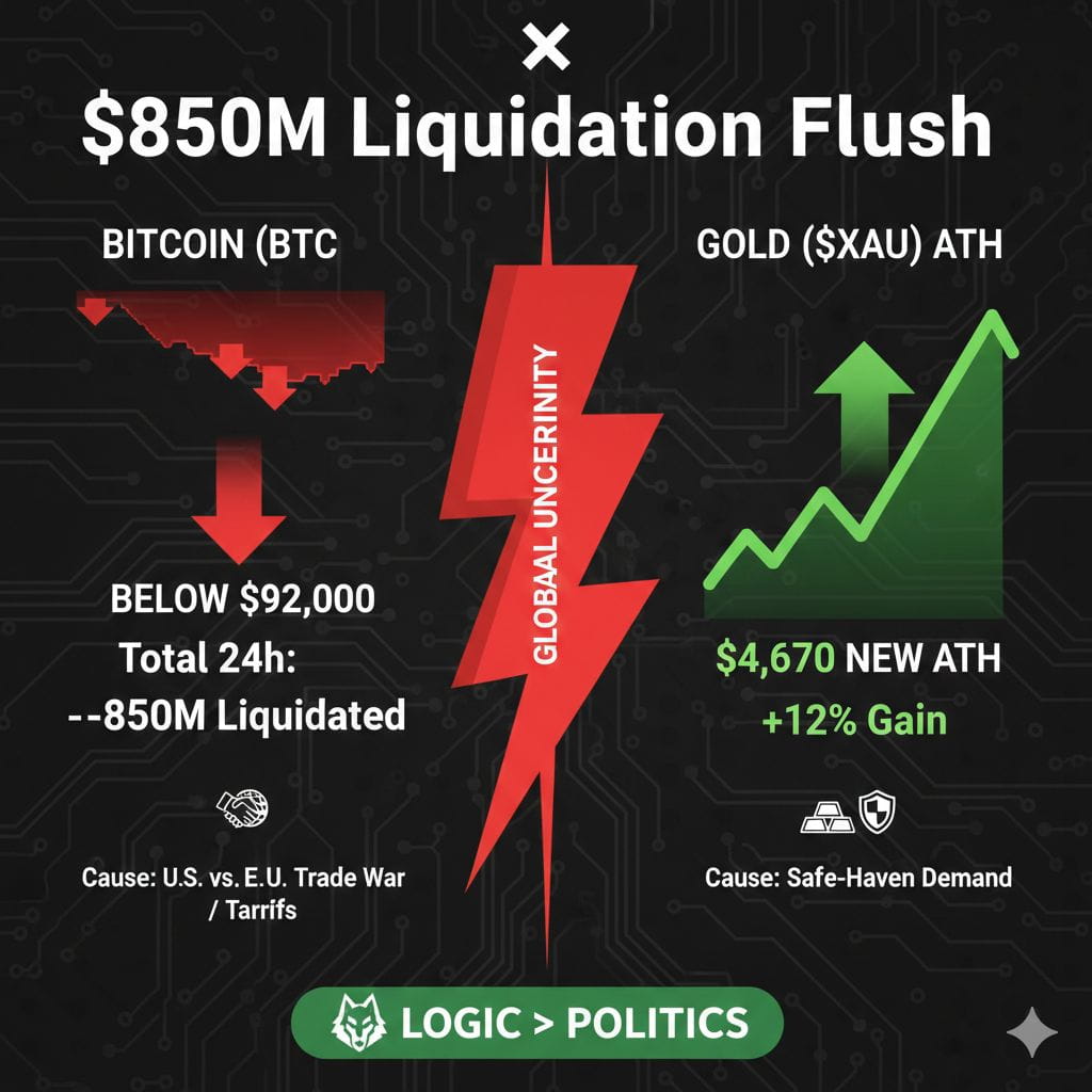El mercado de criptomonedas ha sufrido un fuerte retroceso hoy, con $BTC cayendo hacia el nivel de $91,900. Mientras los titulares se centran en la política, los datos de la blockchain cuentan una historia de posiciones sobreapalancadas que están siendo cerradas a la fuerza.