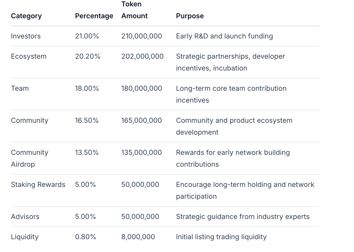 Ecosistema: Desbloqueo parcial en TGE para arranque inicial, asignación central bloqueada a largo plazo con 3 años de adquisición lineal