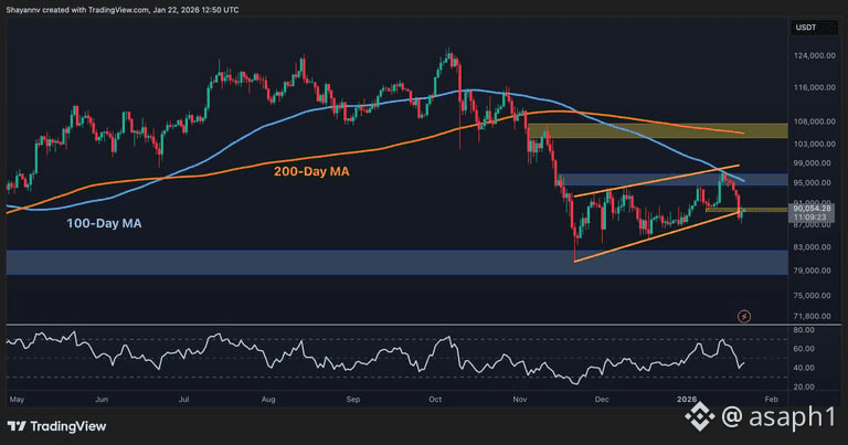 Si analizamos el gráfico diario, nuestro BTC está atrapado en un canal. Mientras cerremos el día por encima de los $88,000 - $90,000, todavía hay esperanza de que esto sea solo un respiro para seguir subiendo. Pero ojo, que aquí viene lo serio: si rompemos ese soporte con fuerza, el próximo "piso" sólido está allá abajo, en los $80,000. Ese fue el refugio donde nos escondimos en noviembre y podría ser el lugar donde el precio busque liquidez otra vez.