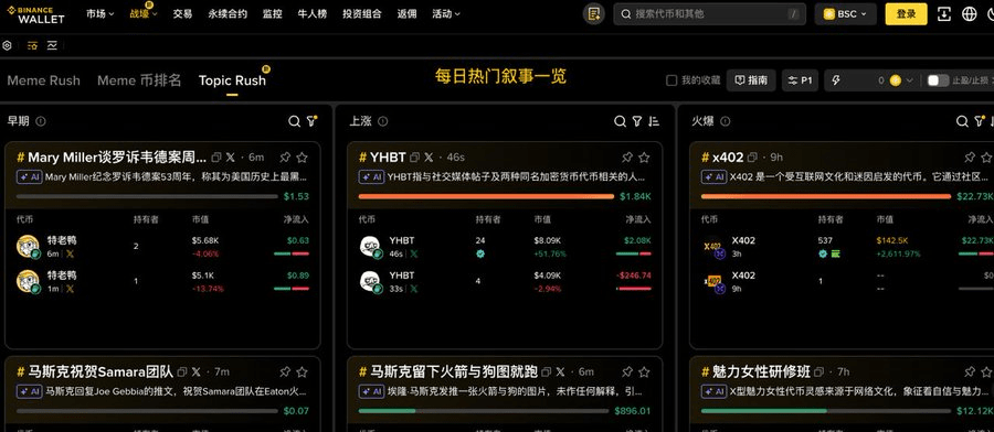 En los últimos días, todas las billeteras han tenido actualizaciones, y la más destacada debe ser Binance Wallet Web3, que ha lanzado la sección Topic Rush, se podría decir que me ha encantado, jaja.