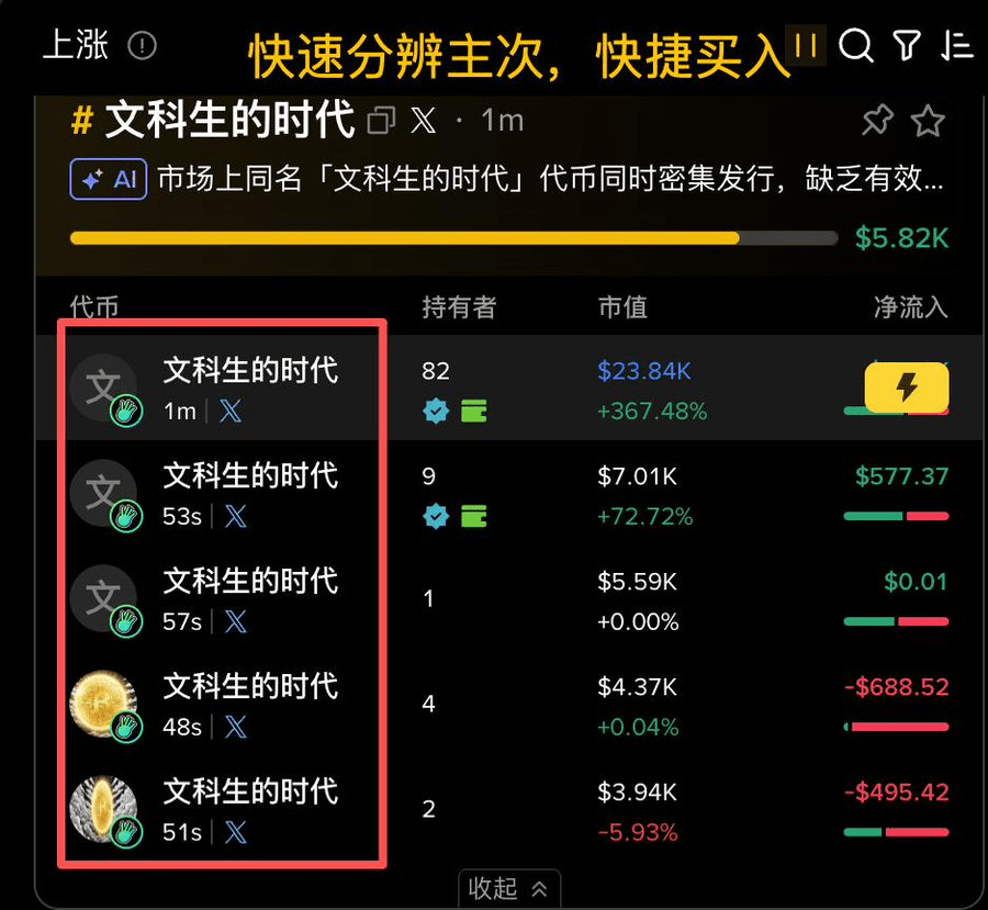 1. Como se mencionó anteriormente, este es un panel de narrativas tempranas en la cadena, tiene mucha información y etiquetas claras (temprano, en aumento, popular), lo que puede convertirse en un indicador importante para juzgar si comerciar o no;