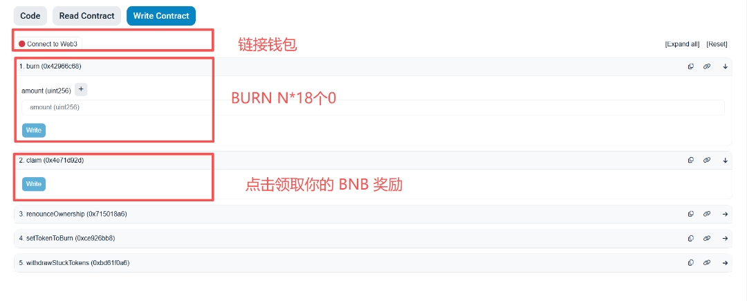 关于燃烧和领取 #BNB 奖励,除了通过 http://burn.ceo 官方 DAPP 外,你也可以通过 BSC 区块浏览器进行燃烧和领取 #BNB 操作!