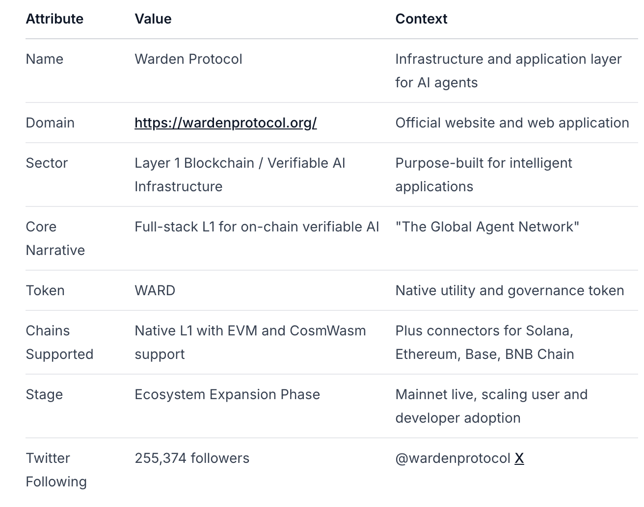 Recomendación Final: Para inversores con convicción en la tesis de "economía de agentes de IA", el Protocolo Warden representa una oportunidad de inversión en etapa temprana con favorable potencial de retorno ajustado al riesgo. Se recomienda una estrategia de asignación por fases.