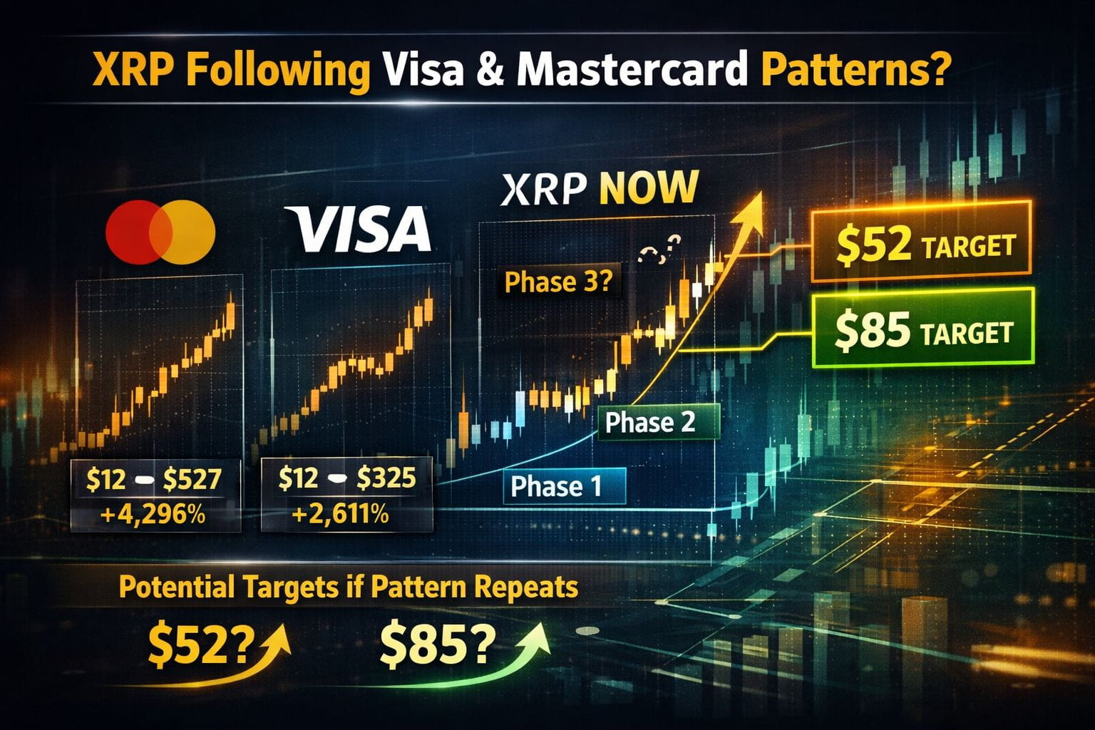 El analista de criptomonedas Steph Is Crypto (@Steph_iscrypto) comparó recientemente $XRP $ la acción de precios actual con las primeras fases de crecimiento de Visa y Mastercard. Ambos gigantes de pagos siguieron una estructura de múltiples etapas de consolidación seguida de fuertes expansiones — una configuración que XPR ahora parece estar formando