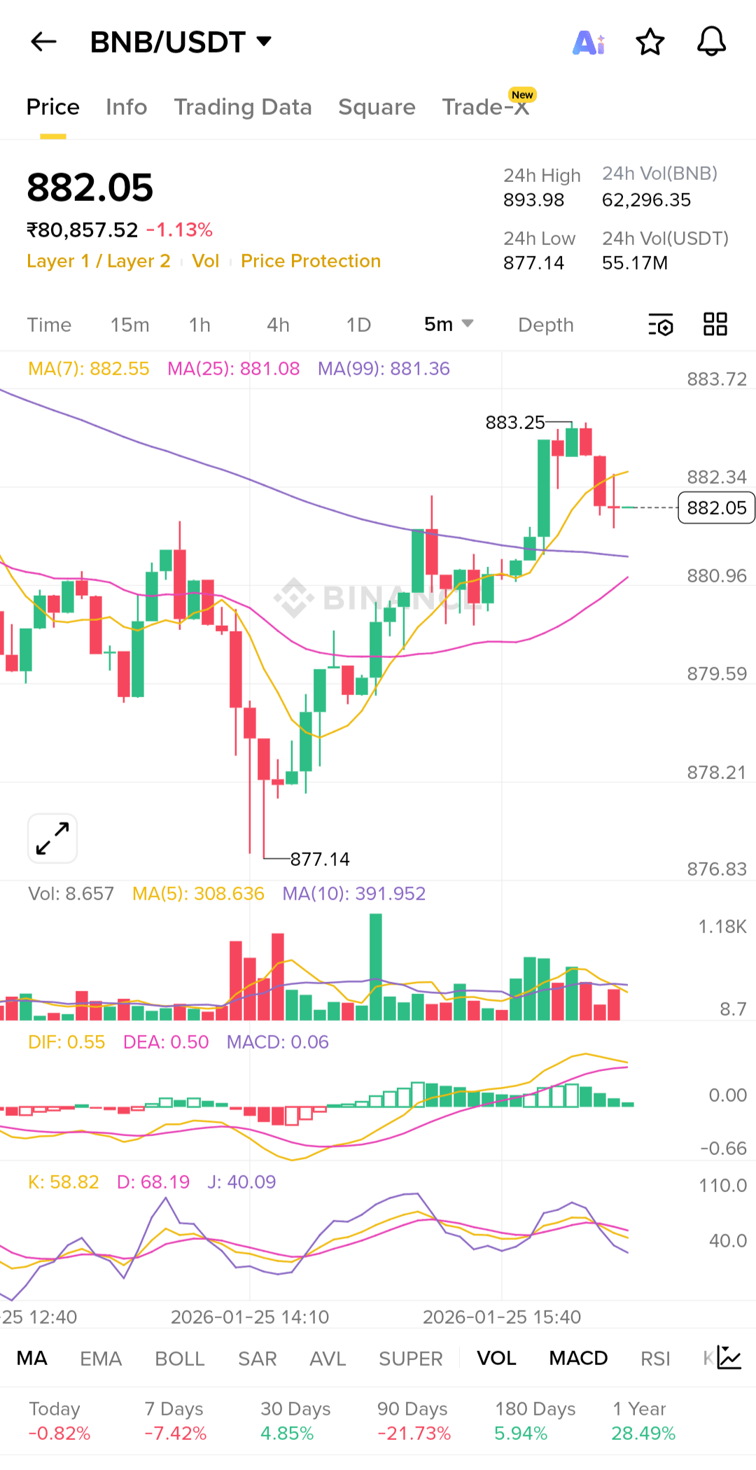 BNB/USDT continúa mostrando una fuerte estabilidad de precios a pesar de la volatilidad del mercado. Los compradores están defendiendo zonas clave de demanda, manteniendo la estructura intacta y señalando confianza en la tendencia 📈.