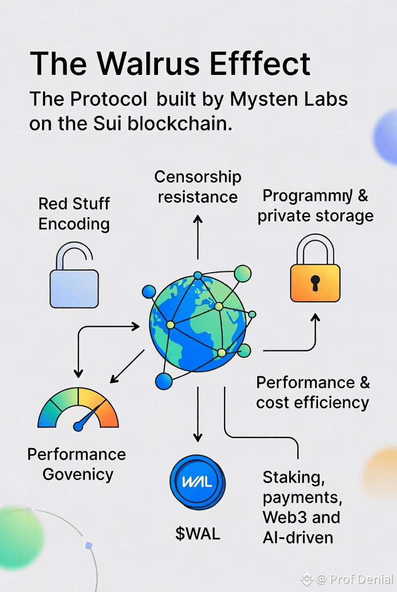 In the Web3 world, data is power but it's also fragile. Centralized platforms like AWS or Google Cloud can delete, throttle, or censor content at will. Traditional decentralized options like Filecoin or Arweave often come with high costs, slow retrieval, or incomplete guarantees against loss. Enter Walrus the decentralized storage and data availability protocol built by Mysten Labs on the Sui blockchain. Powered by the $WAL token, Walrus creates "The Walrus Effect": turning ordinary data into resilient, programmable, and truly uncensorable assets that builders and users can rely on forever.
