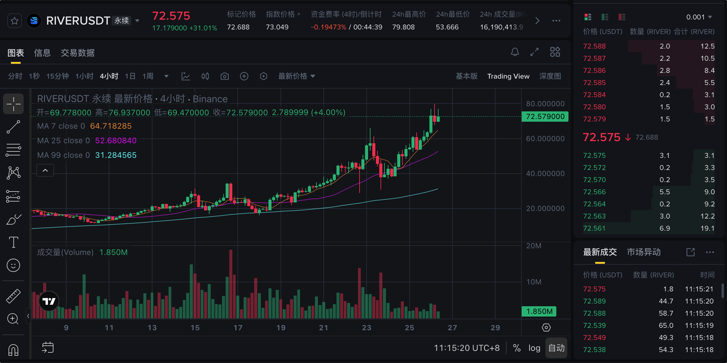 Combining the latest 4-hour candlestick chart, daily chart, and key funding rate data, here is an objective analysis of the subsequent trend of $RIVER: