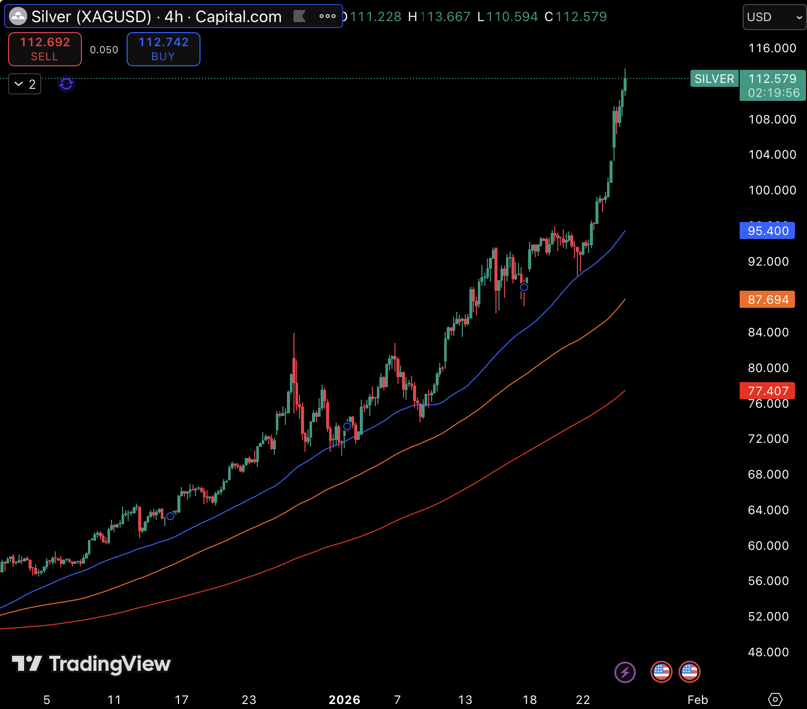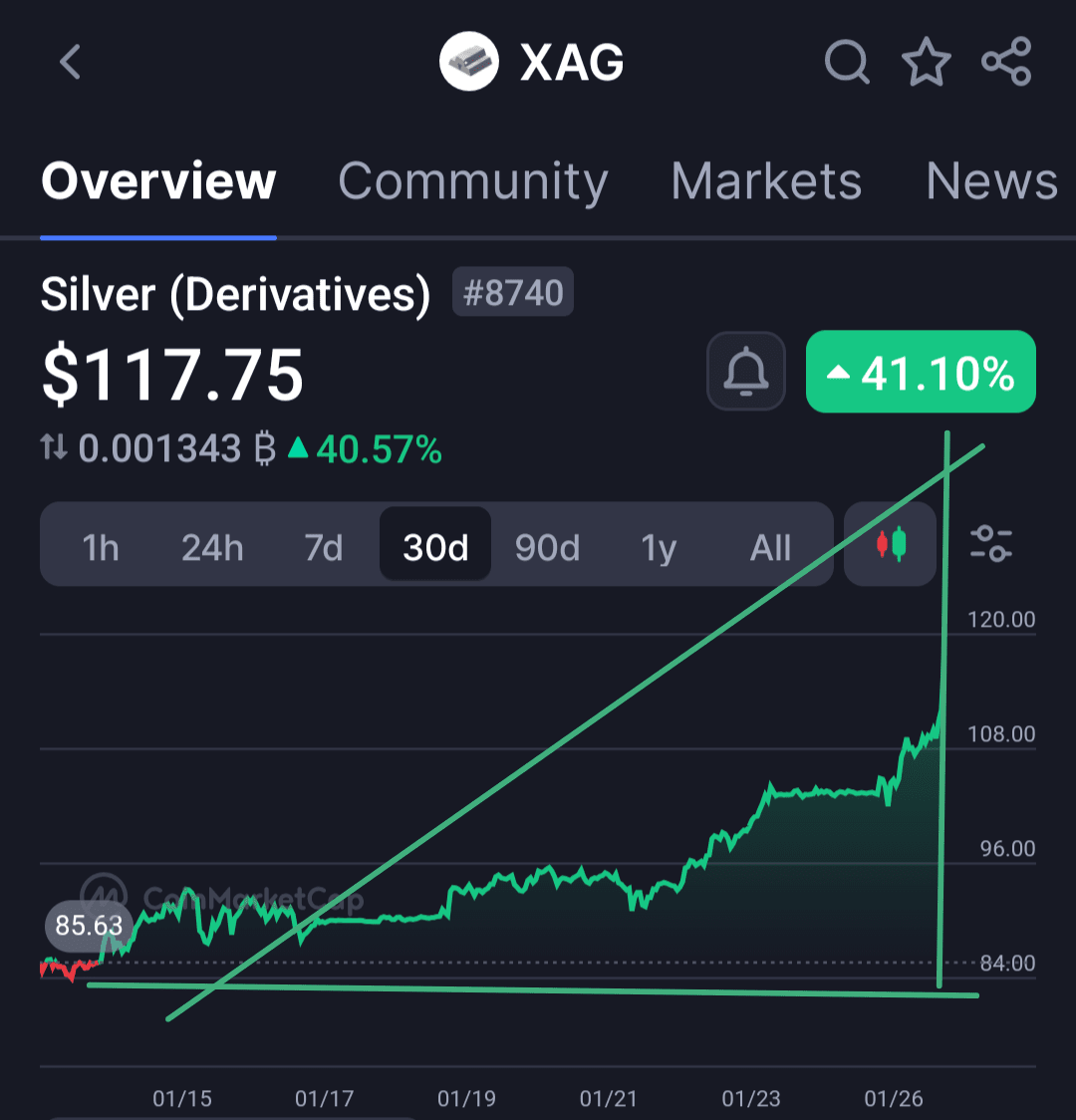 $XAG La plata acaba de alcanzar un nuevo máximo histórico de $117 y eso dice mucho sobre el estado de ánimo actual del mercado.