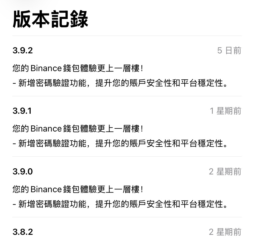 Desde 3.9.0, Binance ya no añadirá nuevas funciones de negociación, toda la energía se ha dirigido a "seguridad" y "estabilidad", perteneciendo a una actualización defensiva.